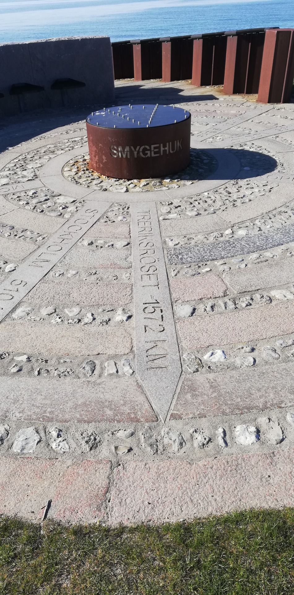 Während der ersten Meter sehe ich mit einemmal Bilder aus Agnieszkas erstem Video über Sverige på längden, auf meiner geistigen Leinwand. Sie hat den ganzen Weg vor zwei Jahren durchgezogen. Von ihren Berichten hab ich viel gelernt. Die Video-Bilder decken sich gerade mit den Eindrücken in der Gegenwart. Smygehamn, der kleine Hafen, die Boote, die alten Gebäude und natürlich der Platz (früher gabs hier eine Säule), welcher Schwedens südlichsten Punkt markiert.
